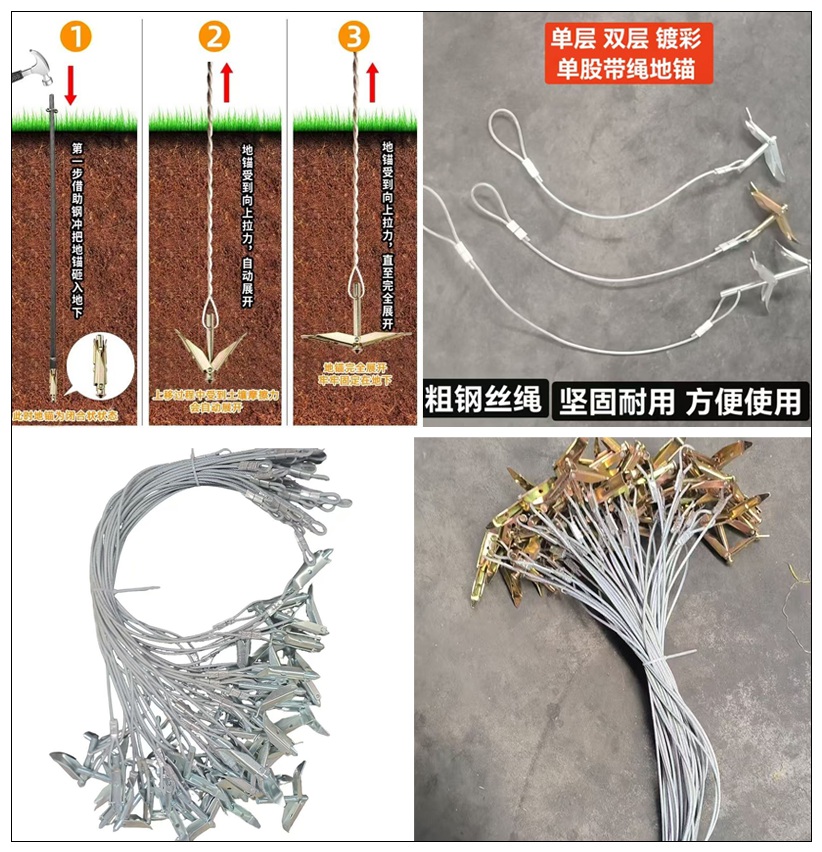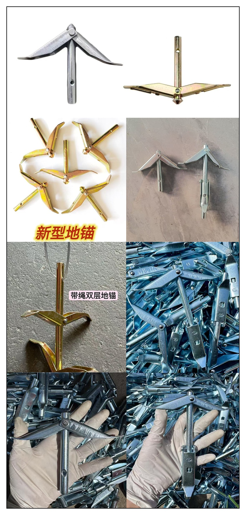 主营:新型大棚地锚,单层地锚,双层地锚,带绳地锚,紧线器,齿轮紧线器,冲杆