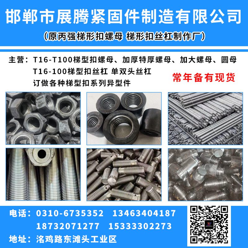 梯形扣螺母、梯形口螺母 梯型扣加厚螺母 梯型扣特厚螺母、梯型扣加大螺母、梯型扣圆母 梯型扣丝杠 梯形扣丝杠 梯形口丝杠 梯型扣双头丝杠 梯型扣单头丝杠 梯型扣异型件 梯型扣异形件