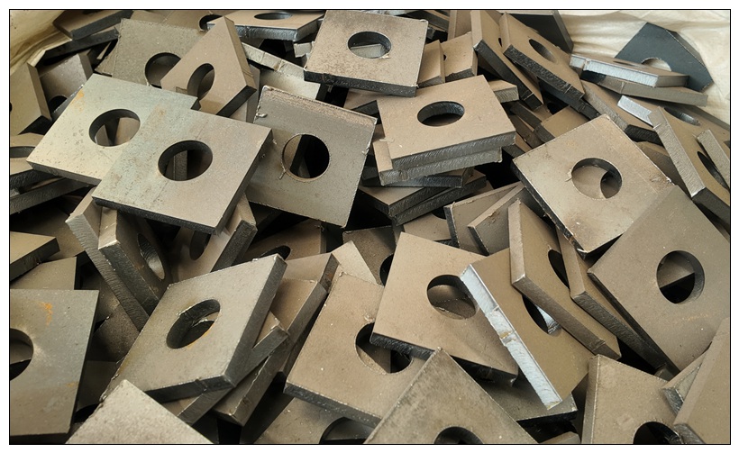 主要生产:大方垫、法兰盘、高铁预埋件、路灯底座、U型丝挂板、地脚螺栓、底板、筋板、工矿铁路专用垫片