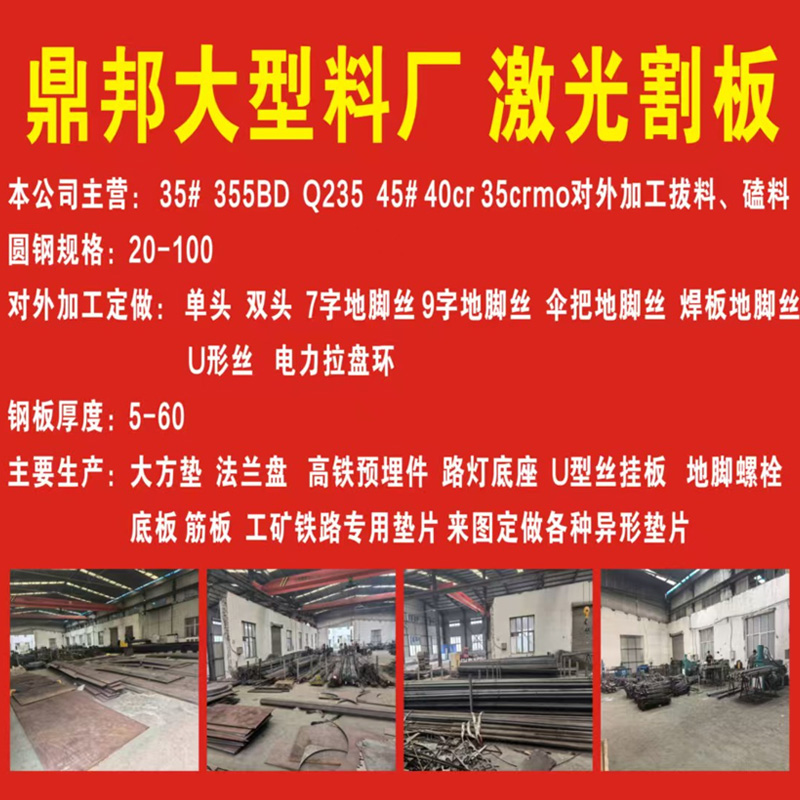 主要生产:大方垫、法兰盘、高铁预埋件、路灯底座、U型丝挂板、地脚螺栓、底板、筋板、工矿铁路专用垫片、地脚螺栓 预埋件