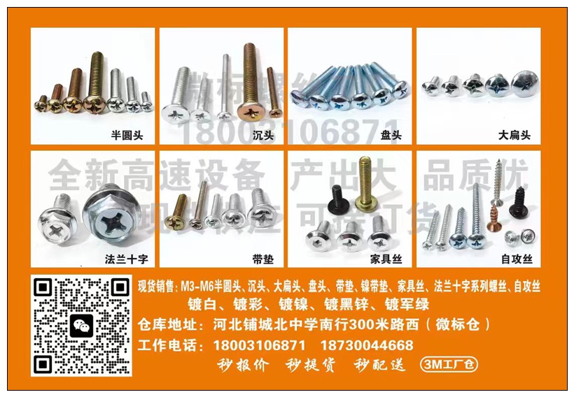 现货销售:M3-M6半圆头、沉头、大扁头、盘头、镍带垫、家具丝、法兰十字系列螺丝、自攻丝