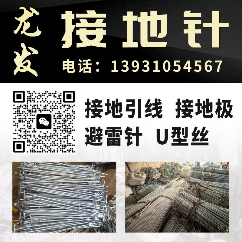 主营:接地针、接地引线、接地极、U型丝、电力镀锌接地针、接地线、家用地线、避雷针、接地桩、丁字接地针、防雷接地线。镀锌U型丝、u形丝、高强U型丝