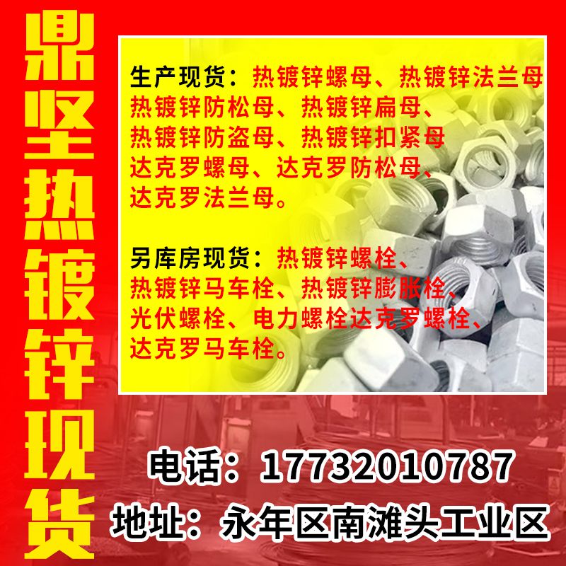 热镀锌法兰螺母、热镀锌防松螺母、热镀锌防盗螺母、热镀锌薄母、达克罗防松螺母、达克罗法兰螺母、热镀锌扣紧螺母.