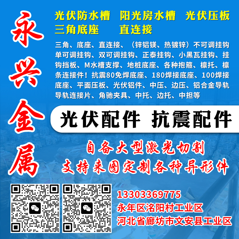 三角、底座、直连接、(锌铝镁、热镀锌)不可调挂钩、单可调挂钩、双可调挂钩、正泰挂钩、小黑瓦挂钩、挂钩挡板、M水槽支撑、地桩底座、各种抱箍、檩托、檩条连接件!抗震80免焊底座、180焊接底座、100焊接底座、平面压板、光伏铝件、中压、边压、铝合金导轨、导轨连接片、角驰夹具、中托、边托、中担等