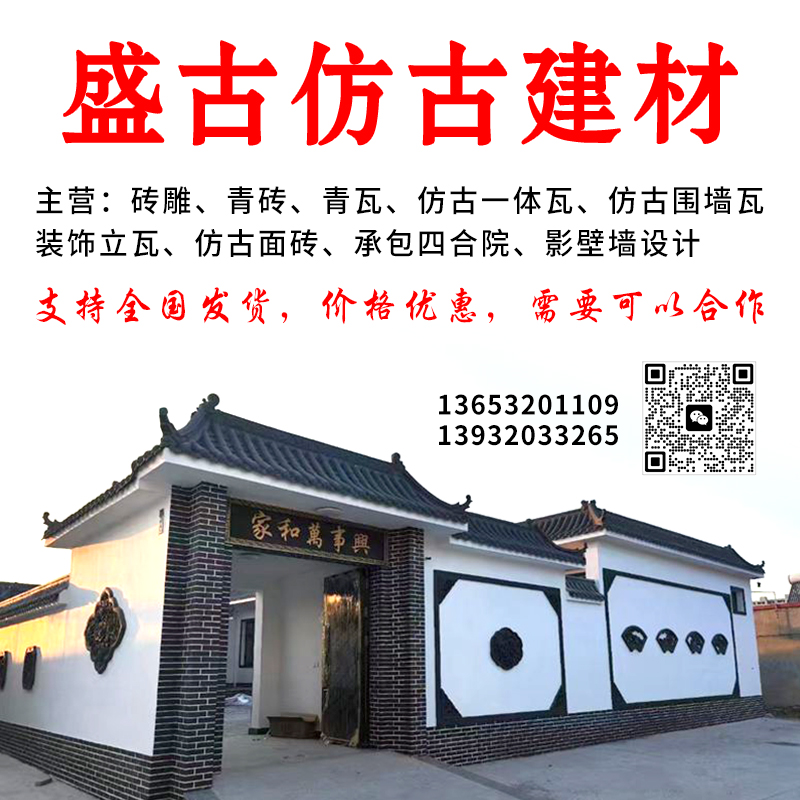 主营:砖雕 青砖 青瓦 仿古一体瓦 仿古围墙瓦 装饰立瓦 仿古面砖 承包四合院,影壁墙设计