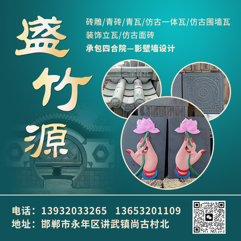 主营:砖雕、青砖、青瓦、仿古一体瓦、仿古围墙瓦、装饰立瓦、仿古面砖、承包四合院、影壁墙设计