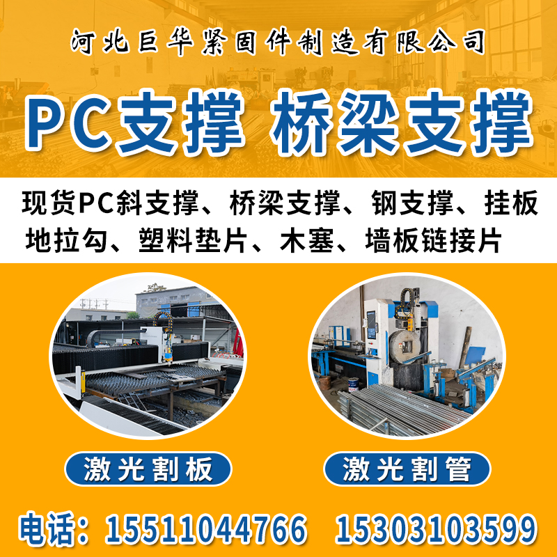 主营:现货PC斜支撑、桥梁支撑、钢支撑、挂板、地拉勾、塑料垫片、木塞、墙板链接片