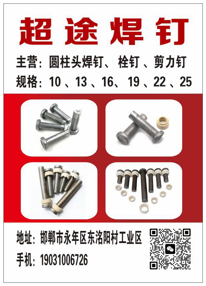 主营:圆柱头焊钉、栓钉、剪力钉、扭剪螺柱、瓷环
