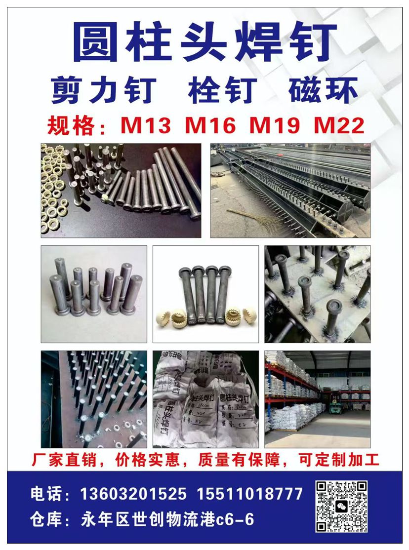 主营产品:圆柱头焊钉,栓钉,剪力钉,瓷环