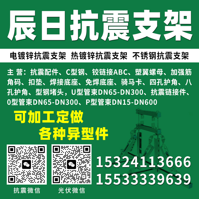 主营:抗震配件,C型钢,铰链接ABC,塑翼螺母,加强筋,角码,扣垫,焊接底座、免焊底座,骑马卡,四孔护角,八孔护角,型钢堵头,U型管束DN65-DN300,0型管束DN65-DN300,P型管束DN15-DN600,抗震链接件、 可加工定做各种异型件