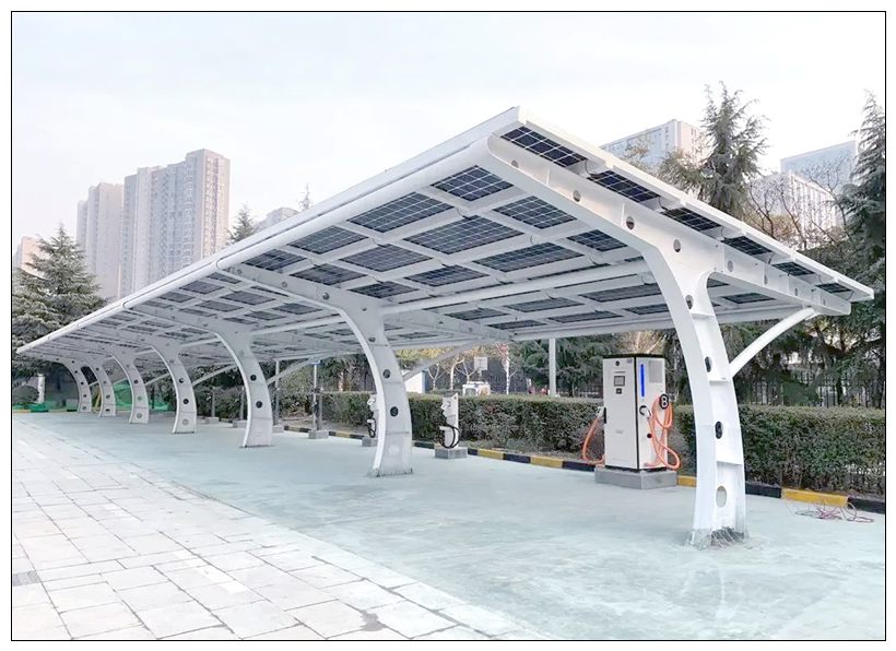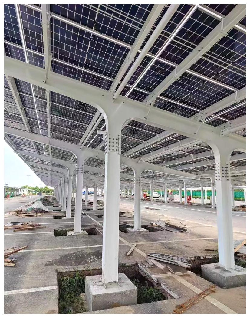 应用场景:工业配套光伏车棚、商场配套光伏车棚、重卡充电桩、 公共设施配套光伏车棚(机场、高铁、体育馆、会展中心、医院、学校、园区、高速服务区等)