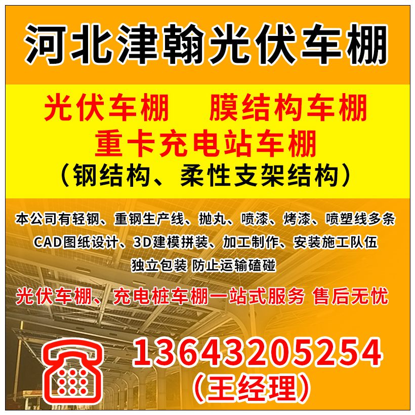 主营:光伏车棚、膜结构车棚、重卡充电站车棚(钢结构、柔性支架结构)