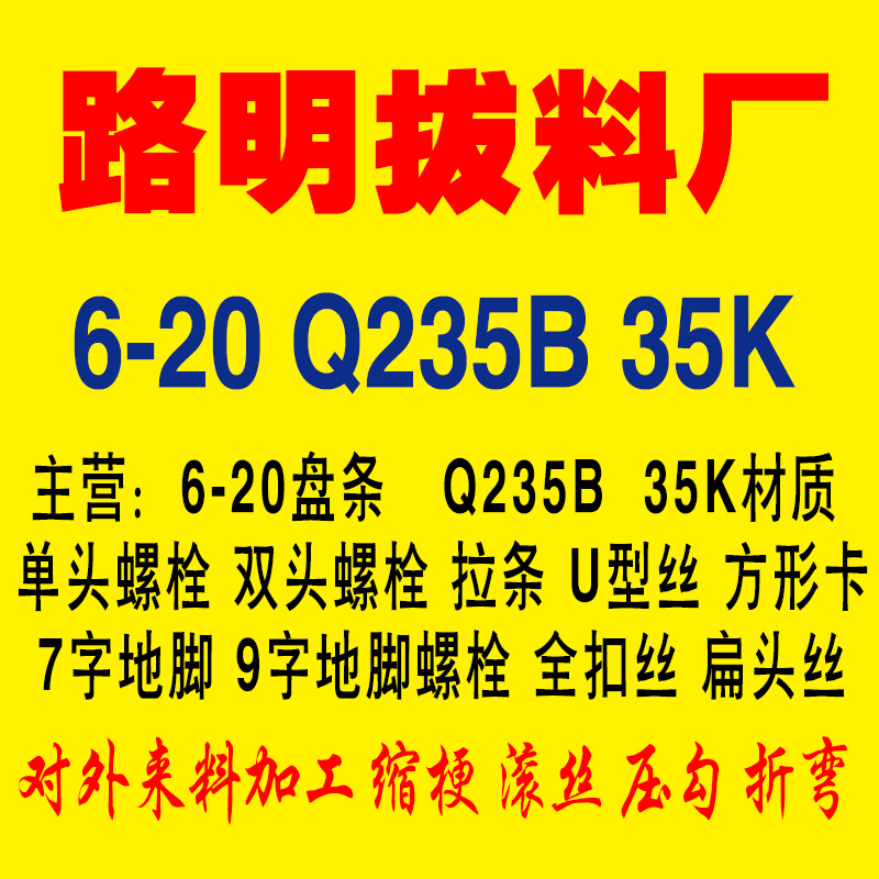 单头螺丝,双头螺丝,直拉条,斜拉条、U形丝,U型螺丝、U形螺栓、U形螺丝、U型螺栓、方型卡,7字地脚螺丝,9字地脚螺丝,地脚丝、地脚栓、全扣丝杠,丝杆、拍扁头螺丝