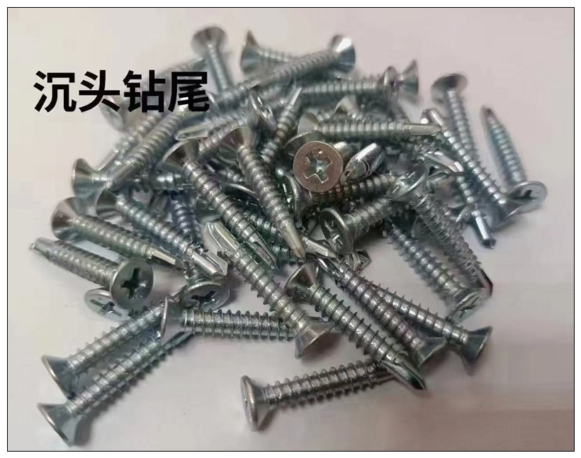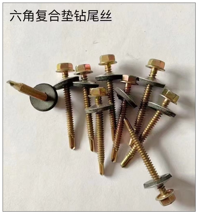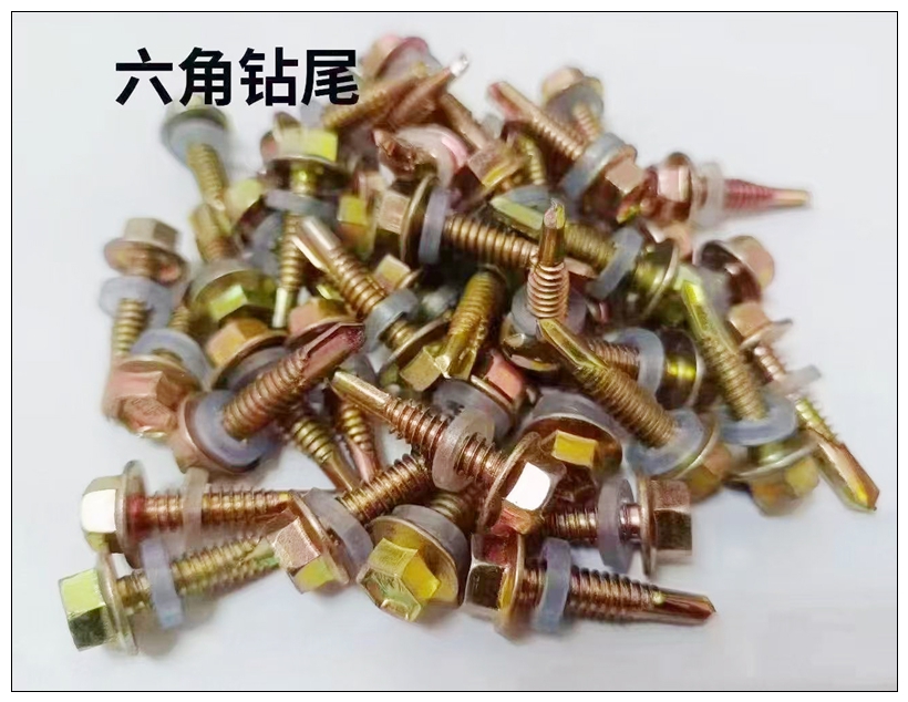 六角头钻尾螺丝、尼龙头钻尾螺丝、六角复合垫钻尾丝、华司头钻尾螺丝、沉头钻尾螺丝、蓝白锌复合垫钻尾丝、国标夹耳钻尾丝、干壁钉、纤维板钉