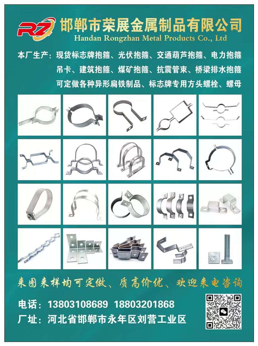本厂生产:现货桥梁排水抱箍、标志牌抱箍、光伏抱箍、交通葫芦抱箍、电力抱箍吊卡、建筑抱箍、煤矿抱箍、抗震管束、