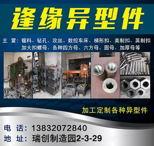 定做各种加高加厚螺母、接头螺母、英制美制螺母、梯形扣螺母、细扣螺母、锥形螺母、圆螺母、套筒螺母、U钻钻孔