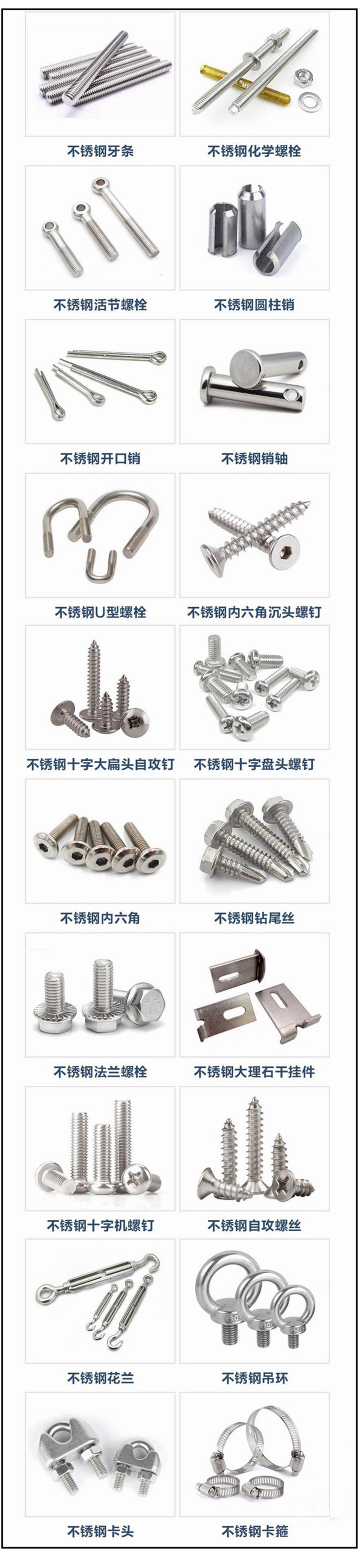 不锈钢螺栓 不锈钢螺母 不锈钢垫圈 不锈钢膨胀 不锈钢索具 不锈钢自攻丝 不锈钢机螺钉 不锈钢喉箍 不锈钢钢丝箍 不锈钢内六角 不锈钢法兰栓 不锈钢背栓 不锈钢化学锚栓 不锈钢家具螺丝 不锈钢国标螺母 不锈钢内膨胀 不锈钢膨胀钩 不锈钢花兰螺丝 不锈钢卡头 不锈钢吊母 不锈钢半圆自攻丝 不锈钢沉头自攻丝 不锈钢六角自攻丝 不锈钢内六角自攻丝 不锈钢半圆头螺丝 不锈钢沉头螺钉 不锈钢螺柱 不锈钢U型丝