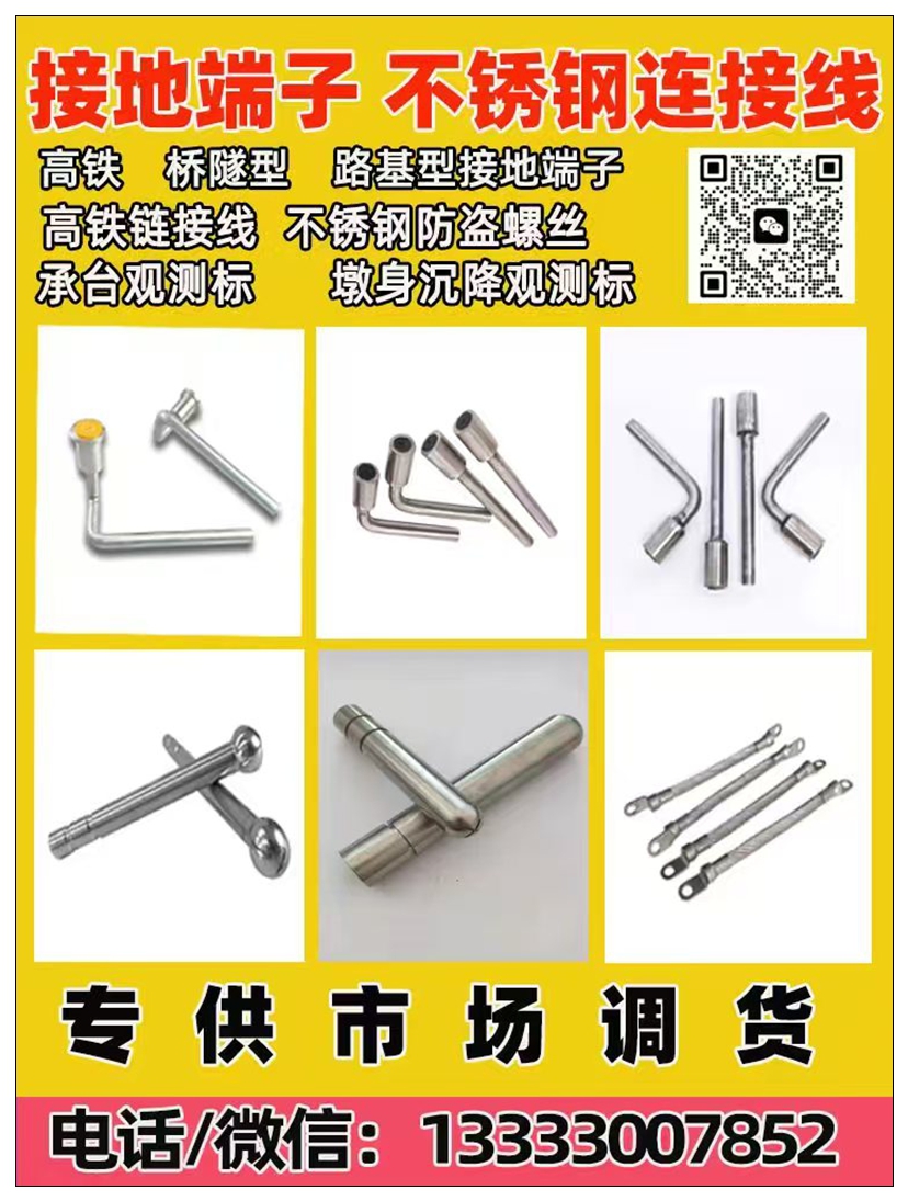 高铁 桥隧型 路基型接地端子 无砟轨道接地端子 不锈钢高铁连接线 不锈钢防盗螺丝 铁路防盗螺栓扳手 贯通地线连接件 高铁链接线 承台观测标 墩身沉降观测标