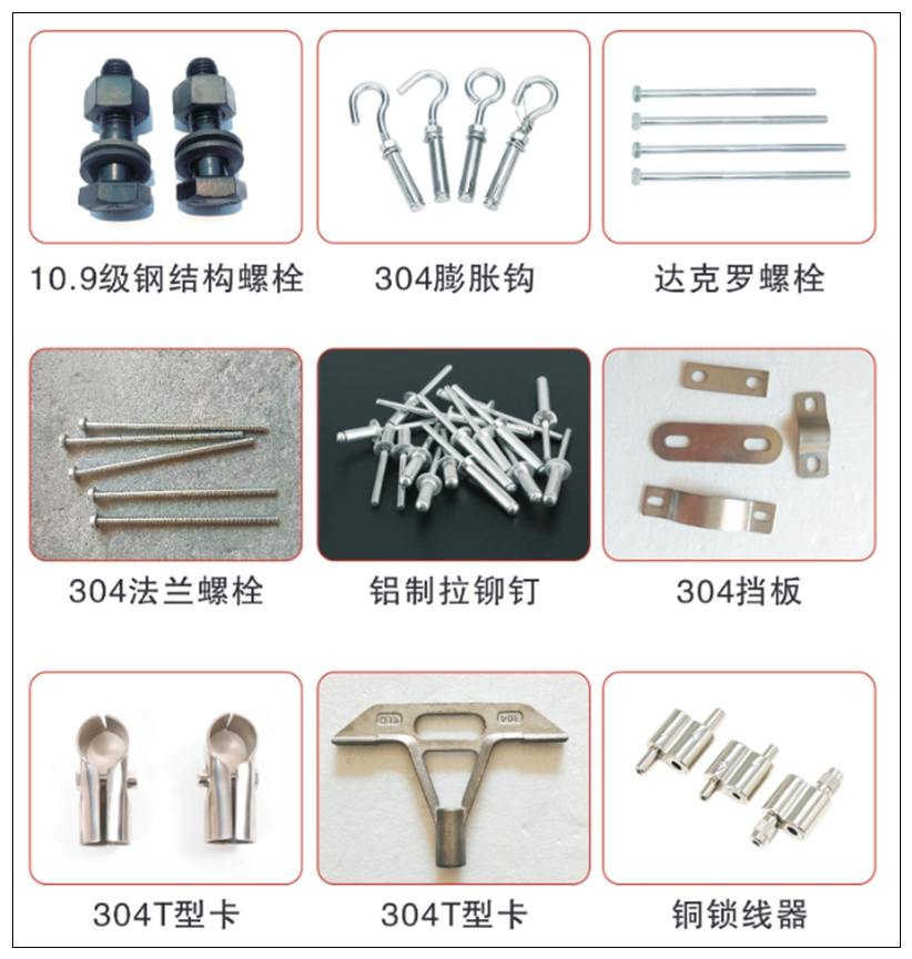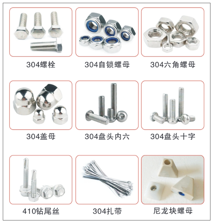 主营:、304T型卡,304花瓣螺母,尼龙块螺母,塑钢线,D型环,塑料链条、不锈钢螺栓、不锈钢螺母、不锈钢猪场配件、不锈钢钻尾丝、不锈钢管卡、不锈钢单U、不锈钢双U、不锈钢化学锚栓、不锈钢膨胀栓、不锈钢喉箍、不锈钢骑马卡、不锈钢钢丝绳、不锈钢花兰螺栓、不锈钢卡扣、不锈钢扎带、不锈钢角码、304螺栓、304自锁螺母、304六角螺母、304盖母、304盘头内六、304盘头十字、410钻尾丝、304扎带、尼龙块螺母、304单U、304双U、304方卡、304挡板、304骑马卡、304喉箍、304钢丝绳、304卡头、304R线夹、304花兰、304膨胀栓、304瓦钩、304倒锥形化学锚栓、304字母铆钉、304平垫、304接地卡、304角码、304方向挂钩、热渗锌螺栓、热渗锌双U、热渗锌单U、热镀锌角码、热镀锌方垫、热镀锌102抱箍、热镀锌圆抱箍、304方形抱箍、10.9级钢结构螺栓、304膨胀钩、达克罗螺栓、304法兰螺栓、铝制拉铆钉、304挡板、304T型卡、铜锁线器、D形环、朱丹扣、不锈钢板、304压板、304拉爆、塑料链条、304旗形合页、指定炮钉、指定钻尾丝、304灯笼螺母、尼龙扎带、尼龙母、304饮水杆固定件、304变径管接、热镀锌通槽固定件、304卡簧、热镀锌角码、吊顶挂钩、304强力箍、304链条、塑钢线、304胶条骑马卡、加大平垫、不锈钢变径
