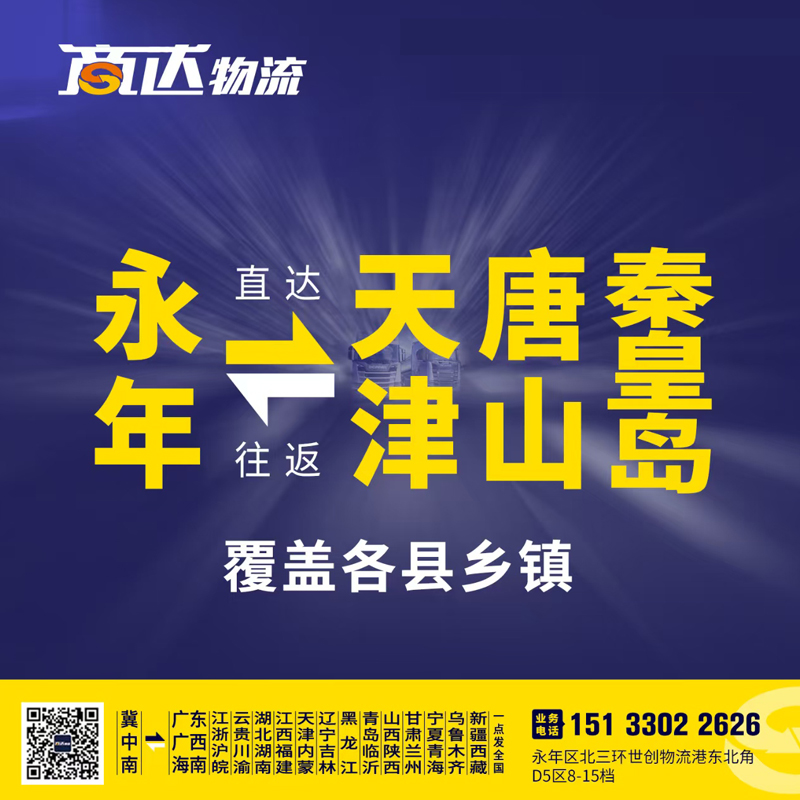 天津专线:东丽区、河北区、北辰区、静海区、滨海新区、蓟州区、芦台区、保税区、宁河区、津南区、西青区、南开区、宝坻区、武清区